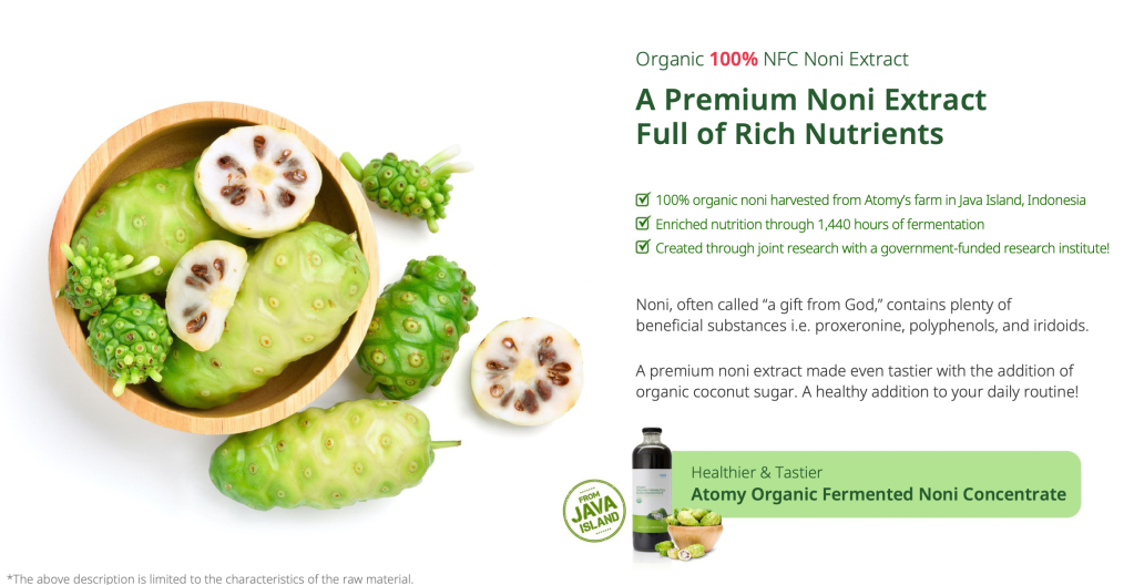 Atomy’s Organic Fermented Noni takes it one step further — using a fermentation process that enhances absorption and maximizes nutrients for your body.